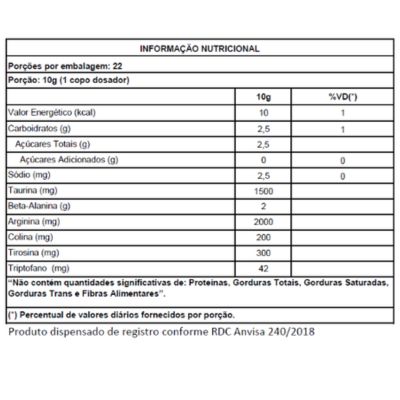 Taurina: Auxilia na recuperação muscular e aumenta o foco.